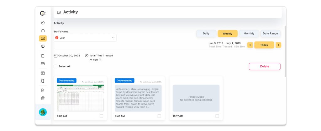 Our platform uses periodic screenshots to capture what employees are working on without intrusive monitoring. Rather than tracking every move, we allow managers to get a clear snapshot of productivity trends in a way that’s both fair and objective. - AI Interpretation: